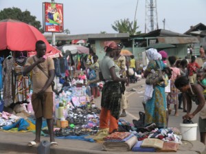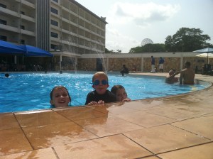 Twice this week we’ve been into Kumasi. It’s an hour drive away from Konongo, and where the children will go to school. It is a city of 1.5 million people and is the second largest city in Ghana, and the capital of the Ashanti Region. It is not as metropolitan as the capital, Accra, but is certainly teeming with life. It’s known as the garden city of Ghana, with several large parks. On the way through the university (KNUST), to have a look at the pool, we saw the Botanical Gardens, which were a large wooded area. Unfortunately, but I guess not surprisingly, the gardens were not fabulously well kept. The kids were thrilled seeing young guys with slingshots aiming at birds in the gardens (!). The pool is very large, good for lap swimming, but the water was (more than) a bit cloudy, so we thought it best to let our immune systems get used to the local bugs before we had a go. We treated ourselves to a posh lunch and swim at The Golden Tulip.